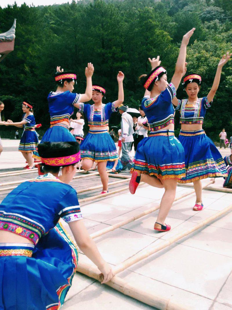 竹竿舞又称竹杠舞,持竿者姿势有坐、蹲、站三种,变化多样。在有节奏、有规律的碰击声里,跳舞者要在竹竿分合的瞬间,不但要敏捷地进退跳跃,而且要潇洒自然地做各种优美的动作。